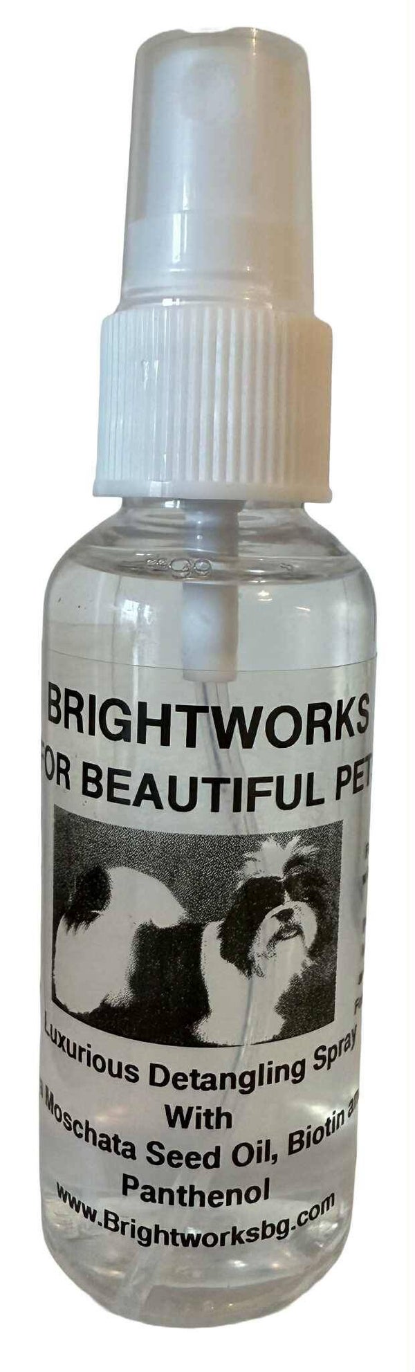 Sprayen løser opp knutene og legger et belegg på håret, noe som gjør det lettere å børste. Egnet for daglig bruk. Beriket med urteoljer og biotin, beskytter det håret og etterlater det hydrert og ser sunt ut. Passer for ALLE pelstyper
